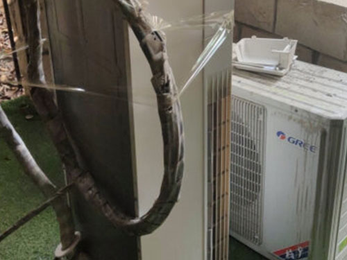 2、確認(rèn)好了以后就把電源拔點(diǎn),用扳手松了銅管,拆了外機(jī)的電源線。注意拆了以后要把接口封好,防止進(jìn)灰塵等雜質(zhì)。