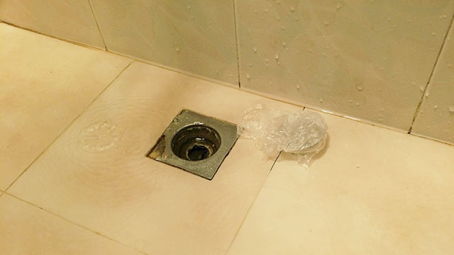 3、用濕毛巾或塑料袋將地漏口堵住,防止地漏反味的臭氣和病菌蔓延至室內(nèi)。