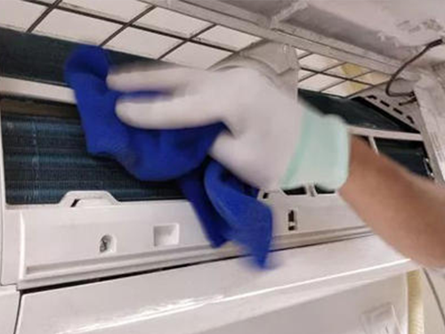 隨后就是清洗壁掛式空調室內機的蒸發(fā)器了,將吸塵器換上長毛吸頭,然后順著冷凝器的縫隙方向吸塵,注意動作要輕,不要損壞翹片。吸完塵后再用潮濕的抹布順著翹片的方向擦拭一下。如果我們有專用的空調清洗劑,也可以直接噴在翹片上,靜置幾分鐘效果更好。清潔完后,我們保持面板開啟的狀態(tài),讓翹片自然晾干。最后用抹布把室內機外殼擦拭干凈。