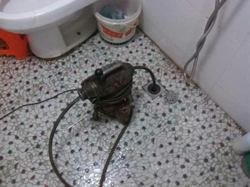 3、靠近角筏接一條足以通到堵點(diǎn)的軟管,把軟管放進(jìn)地漏至塞不進(jìn)去,然后用毛巾盡量堵住地漏口,而后開完角筏水量,同時用力壓住地漏口毛巾盡量不讓水往外返。反復(fù)一至二次能通則通,不通及止。