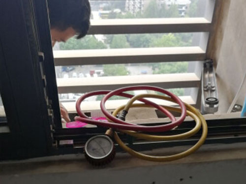 2、夏天調(diào)查低壓壓力,環(huán)境溫度32攝氏度左右時,壓力控制在0.45MP左右;冬季調(diào)查制熱時的高壓壓力,壓力安穩(wěn)后控制在1.7MP左右。在制泠狀況下去掉加氟設(shè)備,擰緊外機密封納子;制熱狀況下去掉設(shè)備的話,會形成很多的氟立昂走漏。加氟結(jié)束。對懷疑有走漏點的空調(diào),要用洗刷精泡沫進(jìn)行檢查。