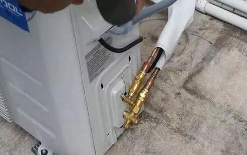 在安裝室內(nèi)機的時候放置一個軟的墊子在上面,這樣可以防止出現(xiàn)劃傷的現(xiàn)象,然后根據(jù)位置來調(diào)整好輸出輸入管的方向與位置,確定是在左出管還是右出管,左背出管或右背出管。將室內(nèi)機輸出輸入管的保溫套管撕開10-15cm,方便與連接管連接,連管時先連接低壓管,后接高壓管,將錐面垂直頂至喇叭口,用手將連接螺母擰到螺栓底部,再用兩個扳手固定擰緊。