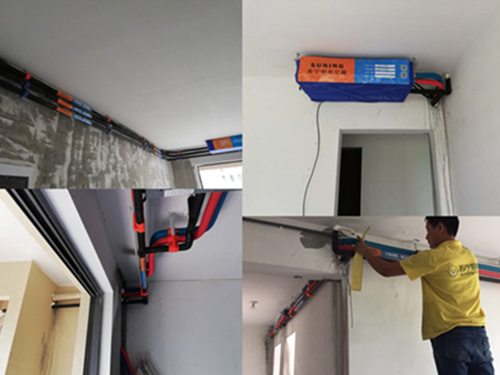 二.防止雨水從穿墻孔向室內(nèi)倒灌。在空調(diào)安裝過程中,必須打一個(gè)室內(nèi)稍高一些的穿墻孔。安裝完成后,穿墻孔的空隙必須用油灰堵好,如果是使用樓道內(nèi)的排水孔,也要注意類似的問題。