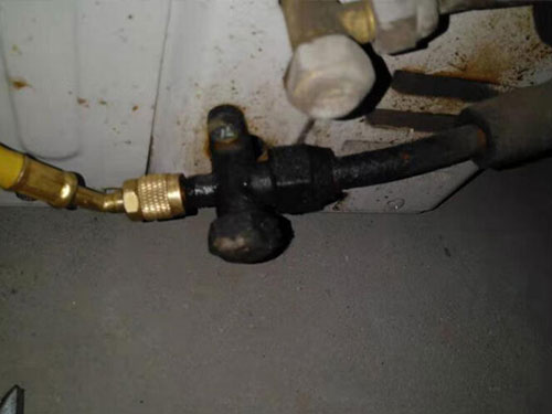 1、用充氟軟管連接制冷劑鋼瓶、修理表和充氟口,排除軟管內(nèi)空氣。啟動(dòng)壓縮機(jī),利用鋼瓶與制冷系統(tǒng)壓力差充入制冷劑氣體(若制冷系統(tǒng)預(yù)先抽真空,應(yīng)在停機(jī)狀態(tài)下先充入制冷劑氣體,待壓力表指針不再升高時(shí),再啟機(jī)充氟)