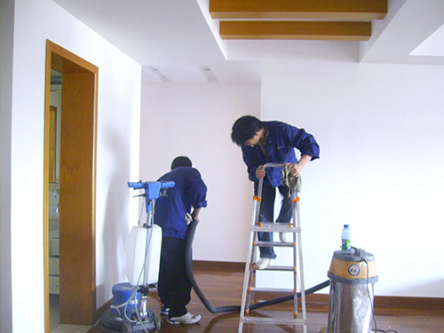 1、首先清理現(xiàn)場在建設(shè)施工階段留下來的建筑和裝修垃圾,比如水泥塊,硅膠等。然后使用大功率吸塵器由上到下全面除塵,角落等地方手工清理。