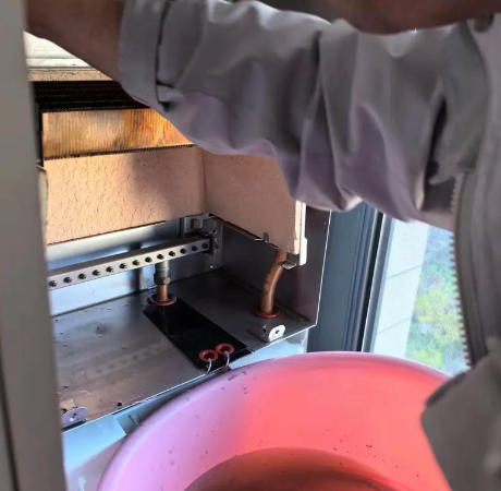 換熱器清洗:將換熱器拆下,使用高壓水槍對(duì)換熱器表面進(jìn)行沖洗。沖洗過程中,注意保持水槍與換熱器表面的距離,以免損壞換熱器。沖洗干凈后,將換熱器安裝回原位。